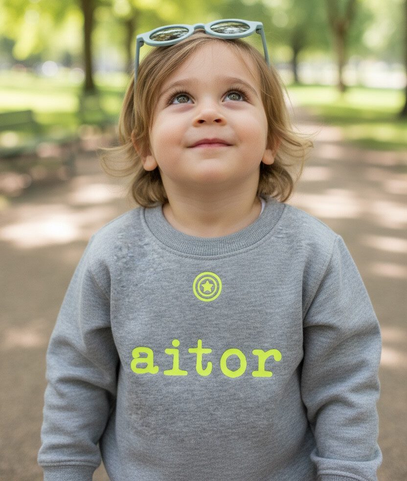 Sudadera clásica de color gris medio jaspeado* con cuello redondo , patronaje unisex, gramaje 290 grs aproximadamente, interior perchado, doble costura en cuello, puños y bajo.